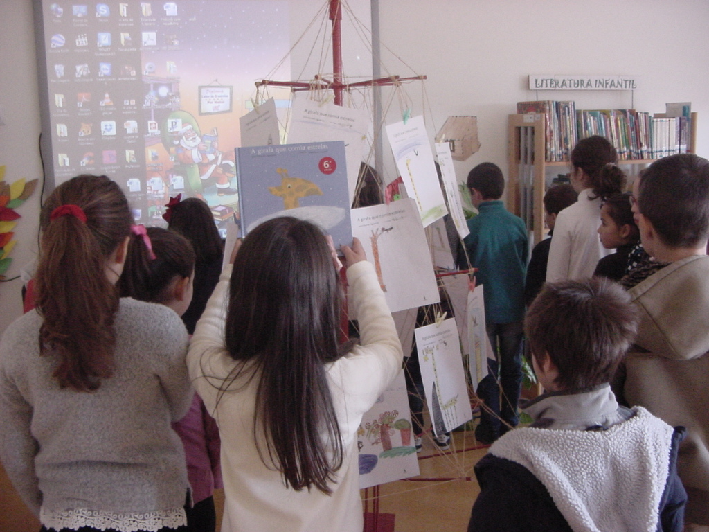 Hoje colocamos,  na árvore das exposições, os desenhos da capa do livro " A Girafa que comia estrelas", de José Eduardo Agualusa. Gostamos muito da história e os desenhos ficaram muito bonitos.